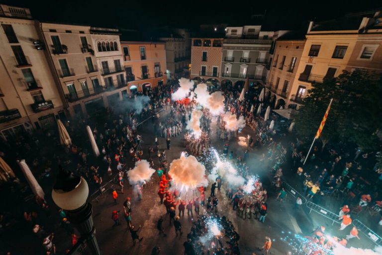 L’encesa conjunta de 500 diables a la plaça de l’Ajuntament clou la diada.